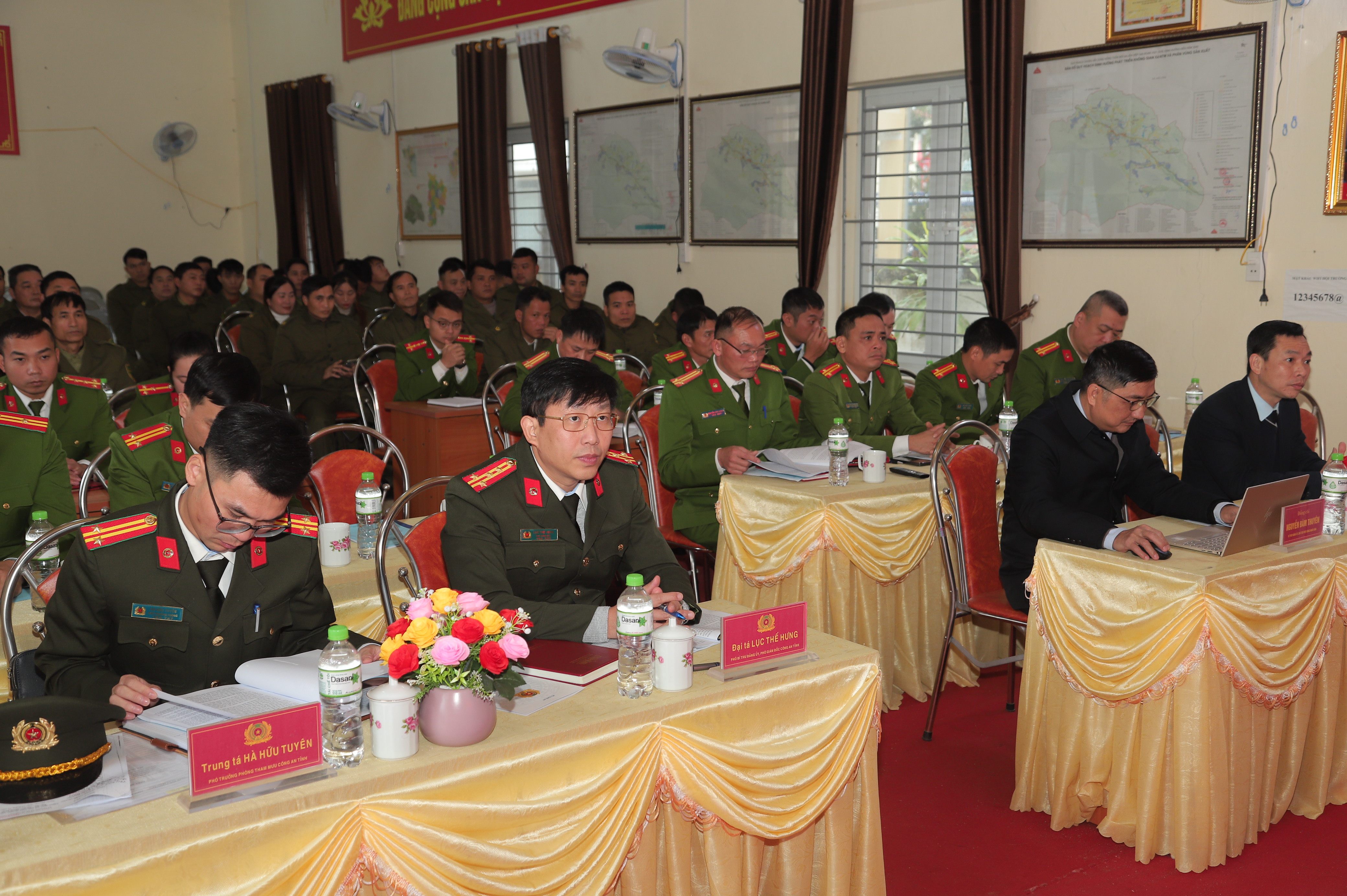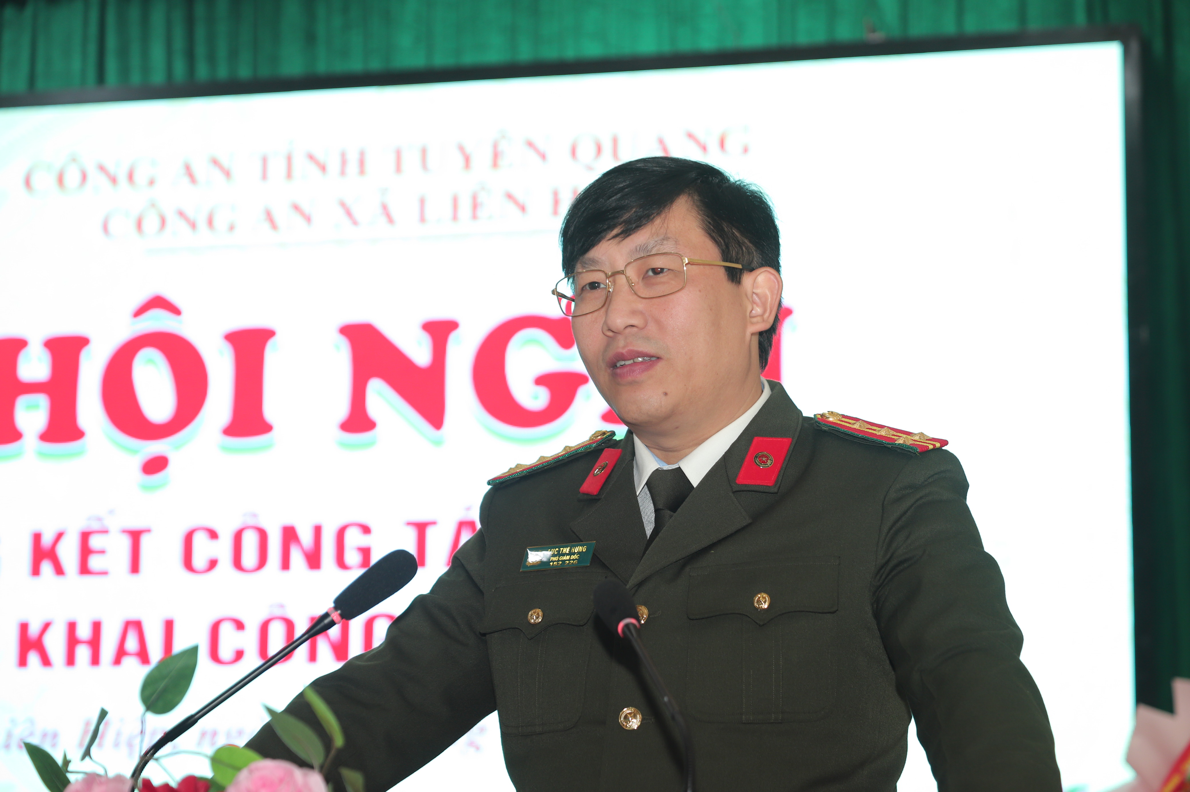 Lãnh đạo Công an tỉnh và UBND xã Liên Hiệp phát biểu tại hội nghị