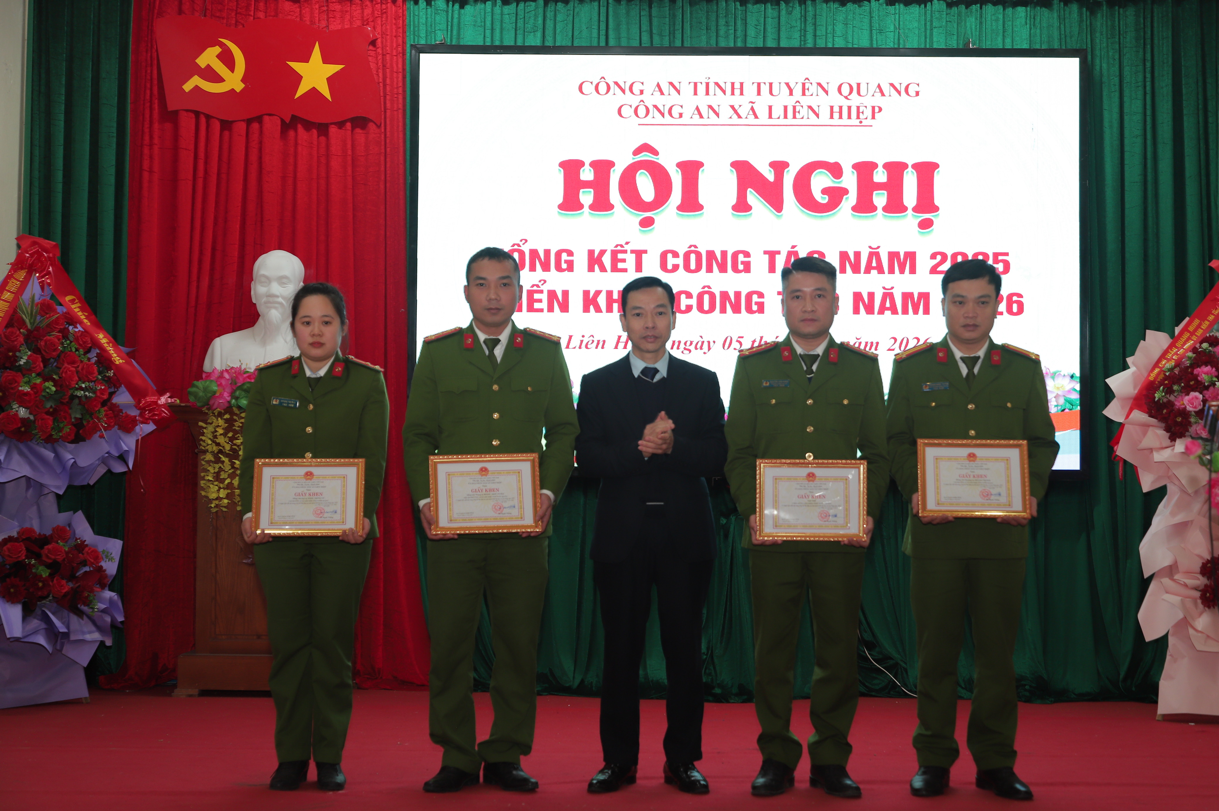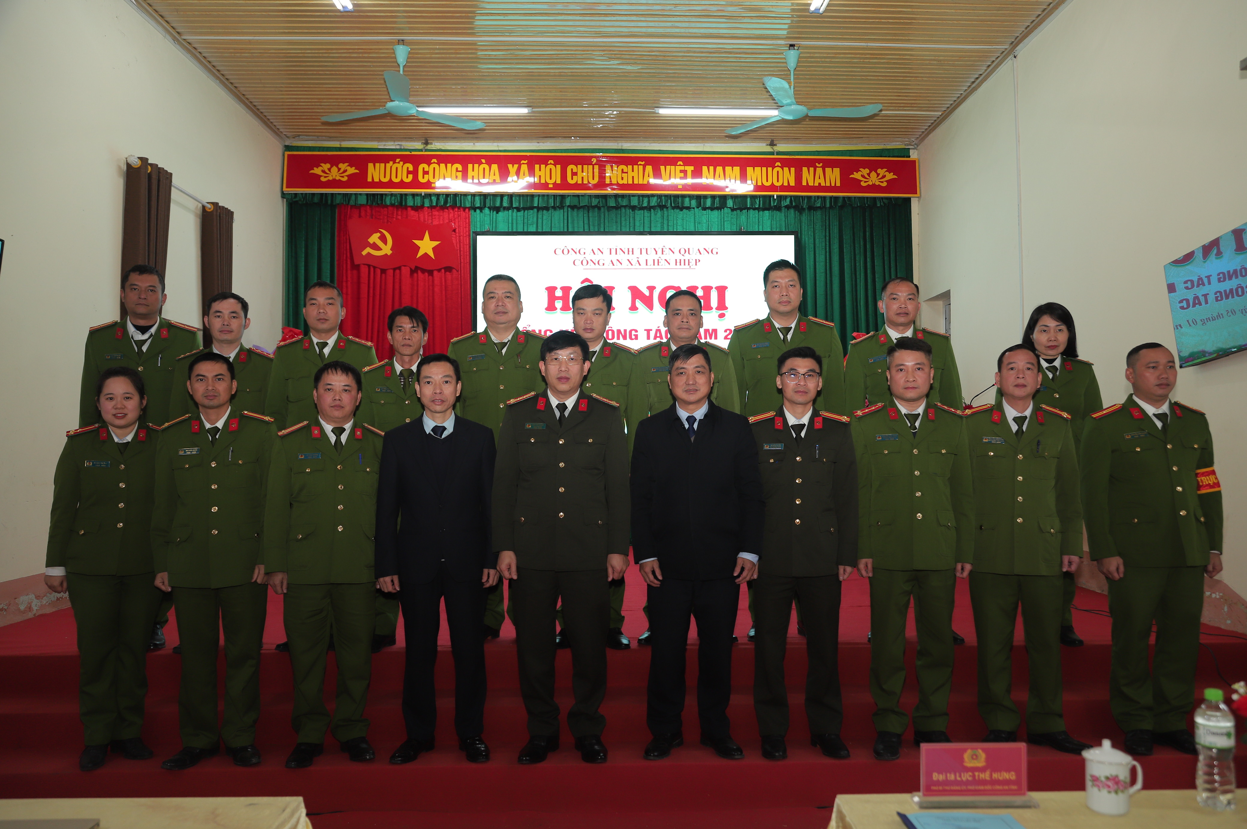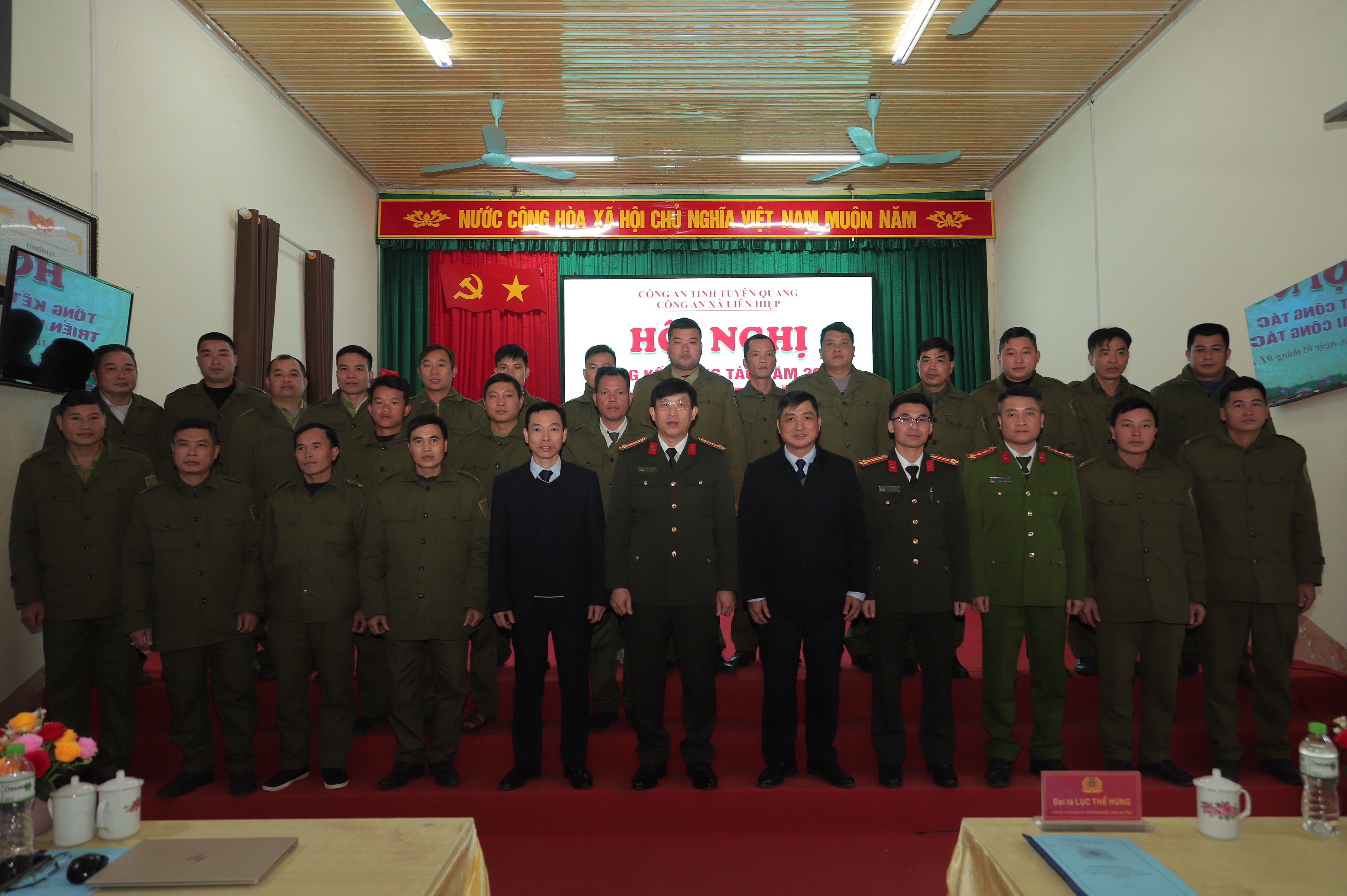 Phát biểu chỉ đạo tại Hội nghị, Đại tá Lục Thế Hưng, Phó Giám đốc Công an tỉnh và lãnh đạo chính quyền địa phương đánh giá cao những nỗ lực, kết quả mà Công an xã Liên Hiệp đã đạt được trong năm qua; đồng thời đề nghị đơn vị tiếp tục phát huy tinh thần đoàn kết, chủ động nắm chắc tình hình địa bàn, nâng cao hiệu quả công tác quản lý nhà nước về an ninh, trật tự, kịp thời tham mưu cấp ủy, chính quyền các giải pháp phù hợp, đáp ứng yêu cầu nhiệm vụ. Quán triệt, thực hiện nghiêm các chủ trương, chỉ đạo của lãnh đạo Công an tỉnh, Đảng ủy, Ủy ban nhân dân xã; chủ động tham mưu triển khai đồng bộ các giải pháp bảo đảm an ninh, trật tự ngay từ cơ sở. Trọng tâm là cao điểm tấn công, trấn áp tội phạm, bảo vệ Đại hội đại biểu toàn quốc lần thứ XIV của Đảng, bầu cử đại biểu Quốc hội khóa XVI và HĐND các cấp nhiệm kỳ 2026 - 2031, Tết Nguyên đán Bính Ngọ 2026. Chú trọng công tác xây dựng Đảng, xây dựng lực lượng Công an xã chính quy, tinh nhuệ, kỷ cương, trách nhiệm; tăng cường phối hợp với các ban, ngành, đoàn thể và lực lượng bảo đảm an ninh, trật tự ở cơ sở, quyết tâm giữ vững ổn định an ninh chính trị, trật tự an toàn xã hội, phục vụ hiệu quả nhiệm vụ phát triển kinh tế – xã hội của địa phương.